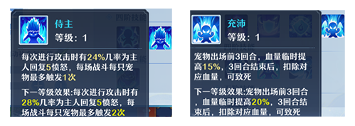 翎音的被动天赋技能[孔雀明王]可让首发宠物和自身因受伤使血量过半时张开[明王护盾],保护己方首发宠物及翎音自身,也可以利用天赋技能[翎音破秽]释放法术攻击3个目标,概率施加破防效果[翎羽],更可用曼妙舞姿祛邪祈福,施放天赋技能2[明王降临],鼓舞己方立即行动并提升伤害。