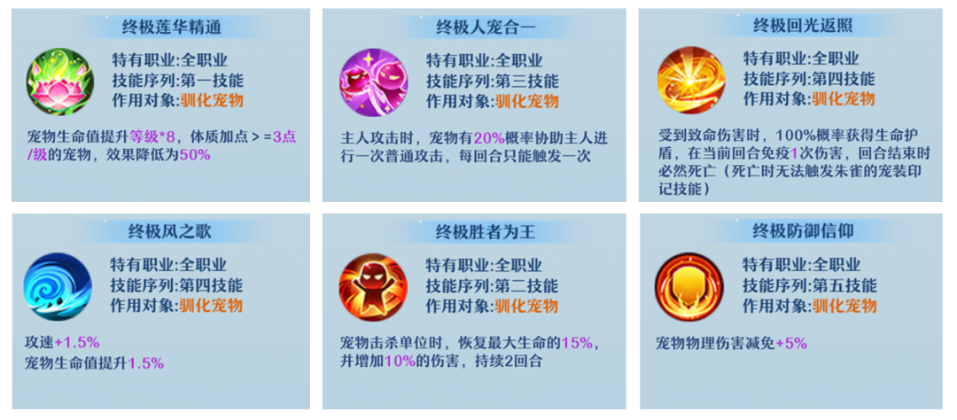 六、坐骑&兽魂 驯化第三、四坐骑,技能选择为: 第三坐骑:威震四野/法连精通、命运眷顾、得道多助/灵心。 第四坐骑:莲华精通、人宠合一、回光返照、风之歌、胜者为王、防御信仰。 兽魂图选择为: 慧音、护体、坚盾、法盾、侍主、充沛。