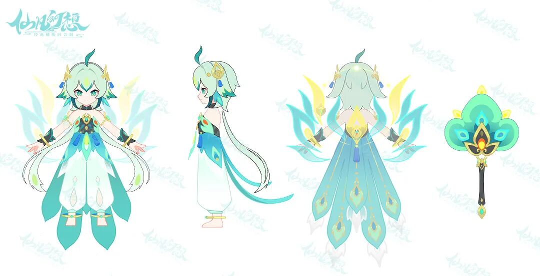 在幼年状态与进阶状态这2种不同形象的设计上,始终保持着“孔雀明王血脉的继承”“神圣祈舞者”的设计主题。