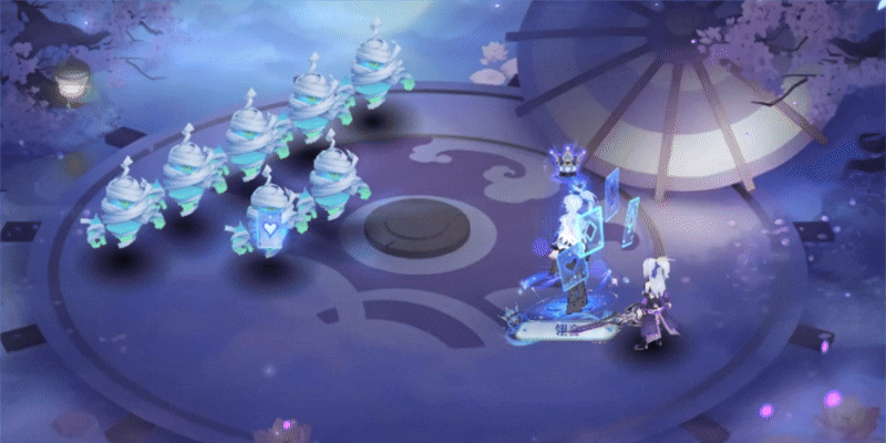 当翎音 · 绮梦幻域释放该技能时,敌人仿佛置身于其魔法结界之中,周身被静谧的蓝色包裹,身旁还有卡牌与魔法交相飞舞。